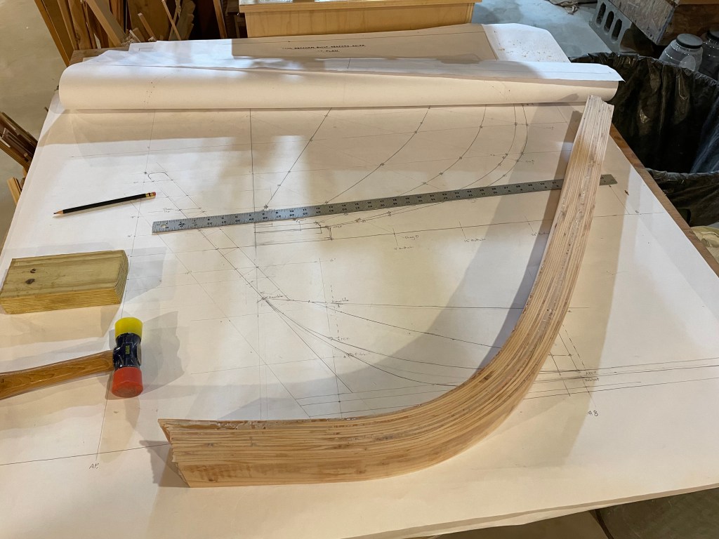 As far as the overall construction methodology I had decided to reduce the scantlings with this build. The 1870s originals used a lot of White oak for the stem, stern post, keel, transom, rudder, and ribs. The hull would have been carvel-planked in 1/2″ cedar. While this would have guaranteed a sturdy build, ideal for the kinds of uses the boat was originally intended, it would have been very heavy. I would not be sailing her in winter gales if I could help it. Moreover, in the 1870s epoxy did not exist.