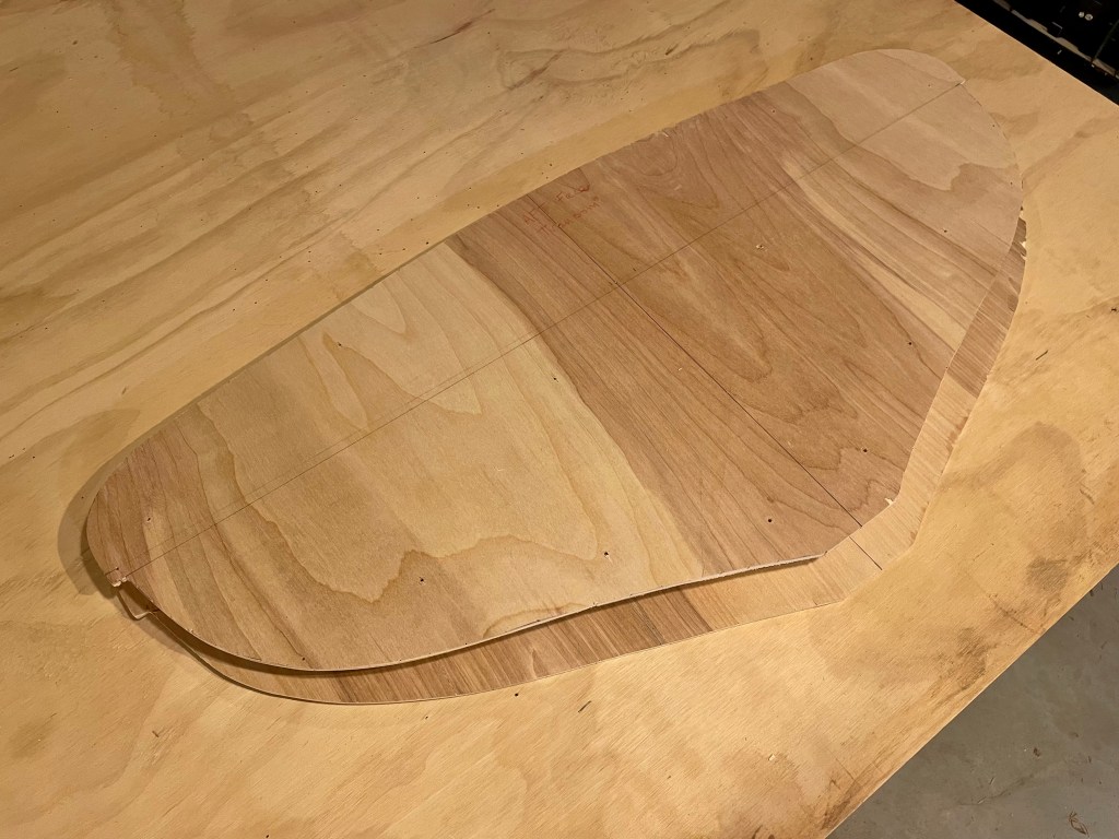 Using the offsets and gridded transom plan, I laid out the transom. I decided to build a template out of 1/4″ ply to make sure I had the bevels for the edges correct, as they were fairly severe compound curves. The rake of the transom was considerable.