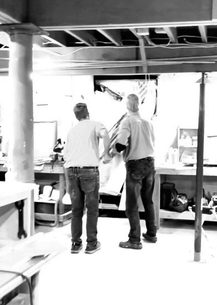 After removing the deck structure to relieve weight, it was time to move her from the basement to the garage for the final stages of construction. And to find out if my exit strategy calculations were correct regarding clearances.