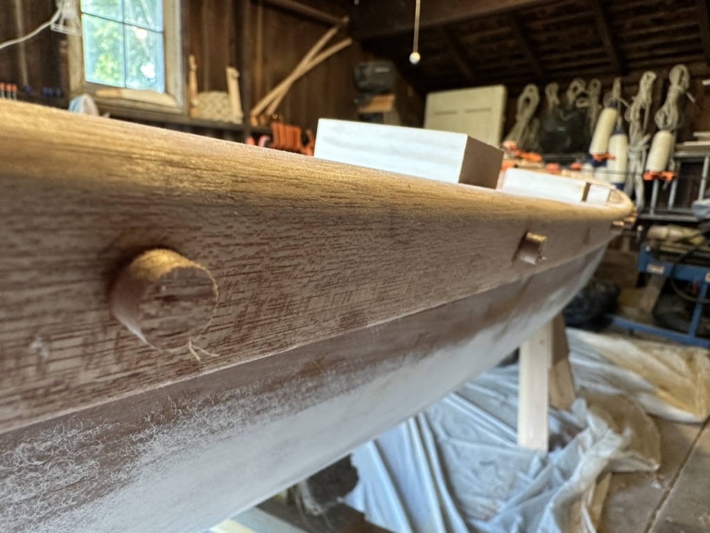 With the decks completed it was time to attach the rub rails. The 1870s originals had white oak rub rails, but I went with mahogany. While oak would better withstand the inevitable abuse, I didn’t have any on hand, and I was interested in having the rub rails match the toe rails. I planned to make some rope fenders anyway.