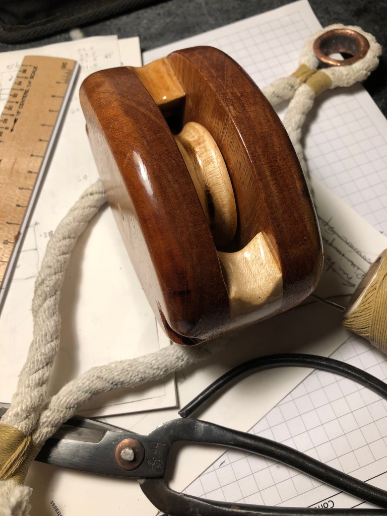 The space heaters in my garage could not keep up with the cold January weather. I could not the finish painting, and I decided to turn my attention to making some mainsheet wooden blocks.
