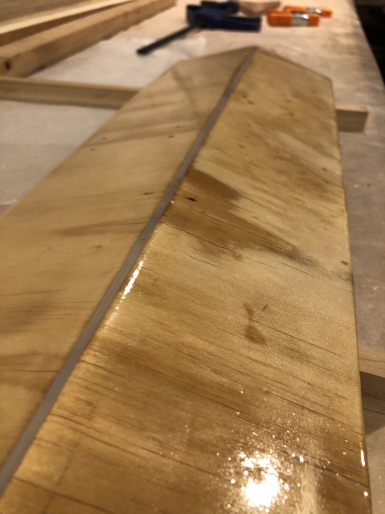 I did a test mockup to see how well I could smooth out the epoxy for the plank edges and the fillets. I found that a finger, well wetted with alcohol, smoothed things out nicely.