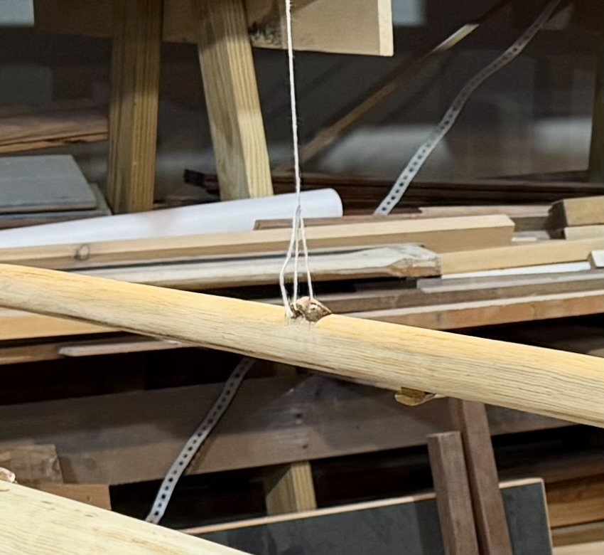 Small white oak fittings were made for the rigging attachments on the spars. They were screwed and glued to the mast as located on the plans.