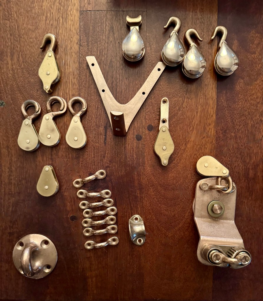 A quick post to highlight the bronze hardware I just received. They were made by Jim Reineck (JM Reineck & Son). All the pieces are cast according to Herreshoff’s original drawings. The are stunningly beautiful and exquisitely made. Of course, they are also obscenely expensive! Jim is a pleasure to work with btw. He was extremely accessible and helpful.