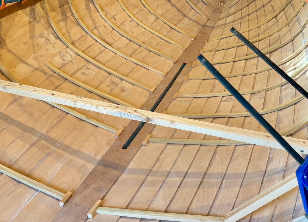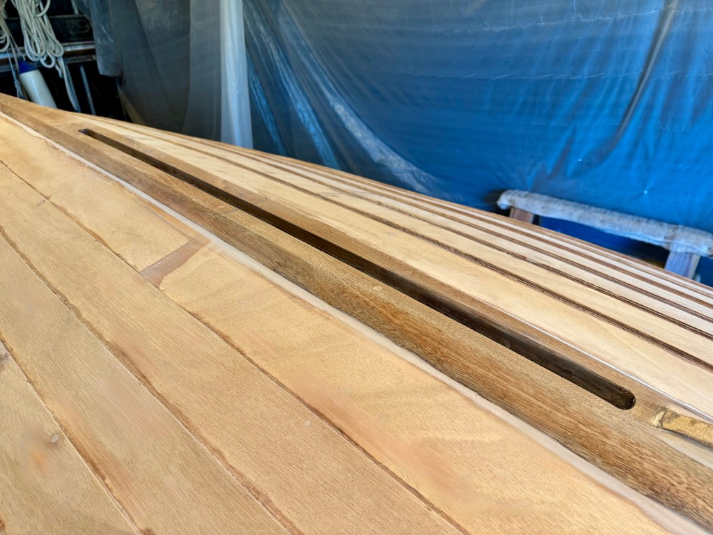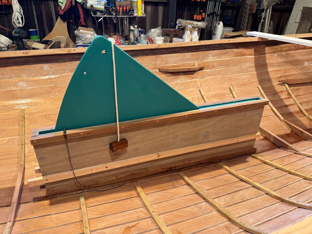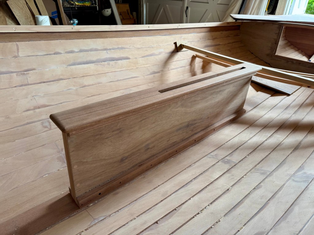 A cap of solid mahogany was made for the cover with a 1″ wide slot for the raised centerboard.
