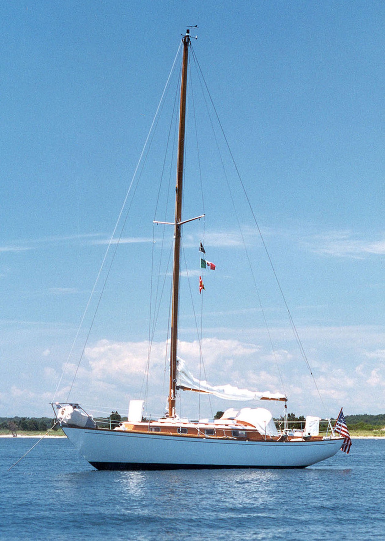 I have been addicted to wooden boats ever since I started sailing as a young boy during summers on Cousins Island in Maine. Wooden boats were everywhere. My uncle was my wooden boat mentor and inspiration. He was a sailor by nature, had been in the Navy, and taught navigation at the Naval Academy in Annapolis. He owned a succession of wooden boats. Eventually he settled on MERRY YARN, a wooden Sparkman & Stephens-designed Finisterre yawl built in Uruguay. He lived aboard and cruised her seasonally from Maine to the Bahamas. He raced her occasionally and collected quite a bit of silver. I crewed for him every chance I had on passages, in races, and on short hops along the East Coast. Curiously, none of his five kids were much interested in sailing. So, I was it. Through high school and college, when he called, I went.